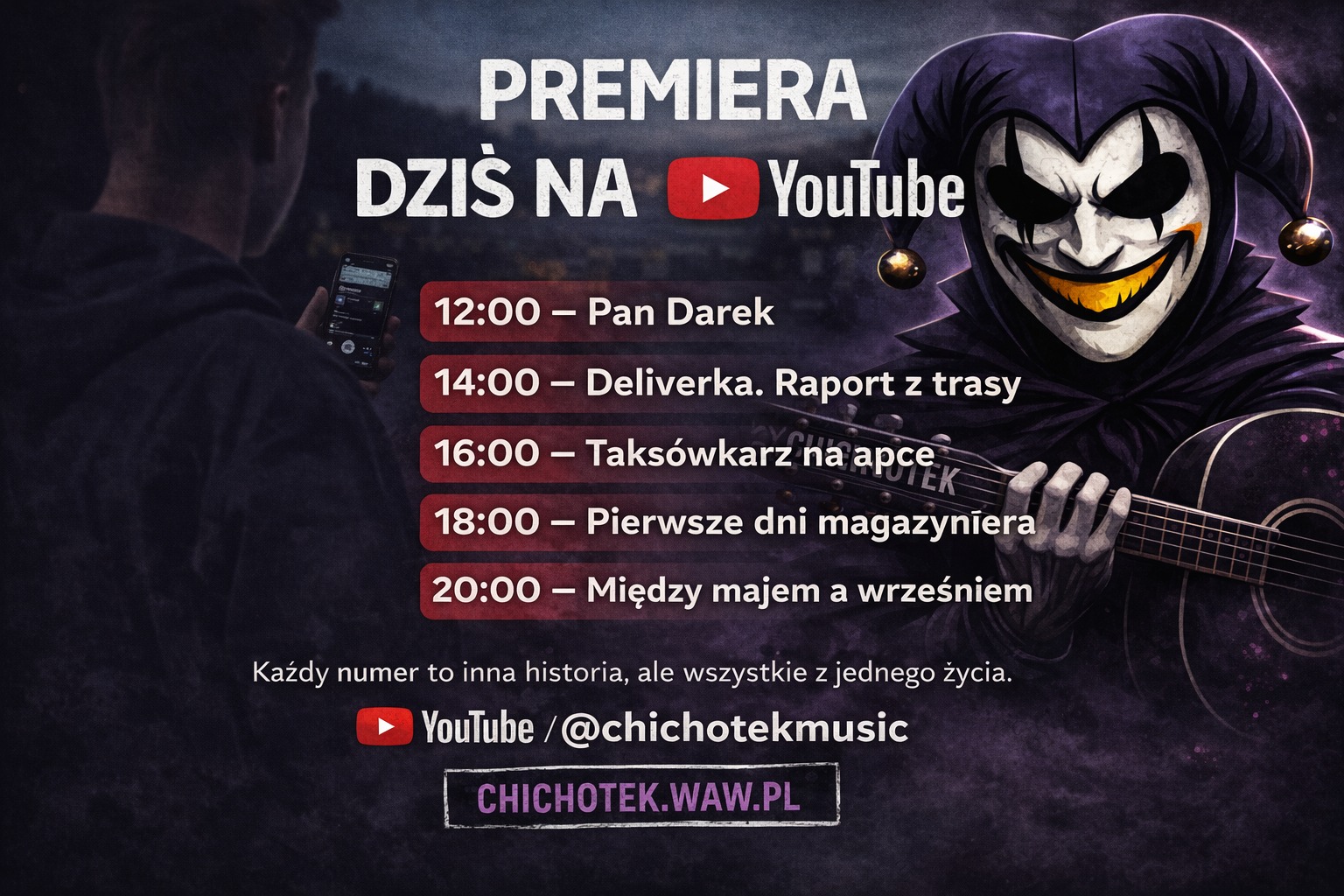 Dziś lecimy z premierą na YouTube 🚀 Nie jeden numer, nie dwa. Ale wszystkie 5. Cały dzień z Chichotkiem. Dziś jedziemy bez pauzy.